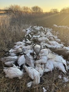 On October 16, 2025, Saskatoon Conservation Officers received a call through the Turn in Poachers and Polluters (TIPP) hotline. Officers responded to the Blucher area and found 142 dead migratory birds dumped on private land near Patience Lake, approximately 30km southeast of Saskatoon. All edible meat had been left to waste.