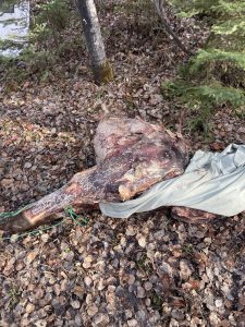 On May 4th, 2024, Nipawin Conservation Officers received a call on the Turn in Poachers and Polluters Line. The call stated that a bull elk was dumped and left to waste within the town of Nipawin. Upon investigation, it was determined that the head of a 5×5 bull elk and the front half of the elk carcass had been dumped. Officers believe that the bull elk was shot in the fall of 2023 and that the carcass had been hanging until it was dumped. Distinct tire tracks were present at the scene.