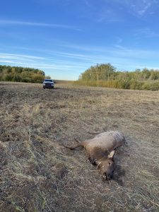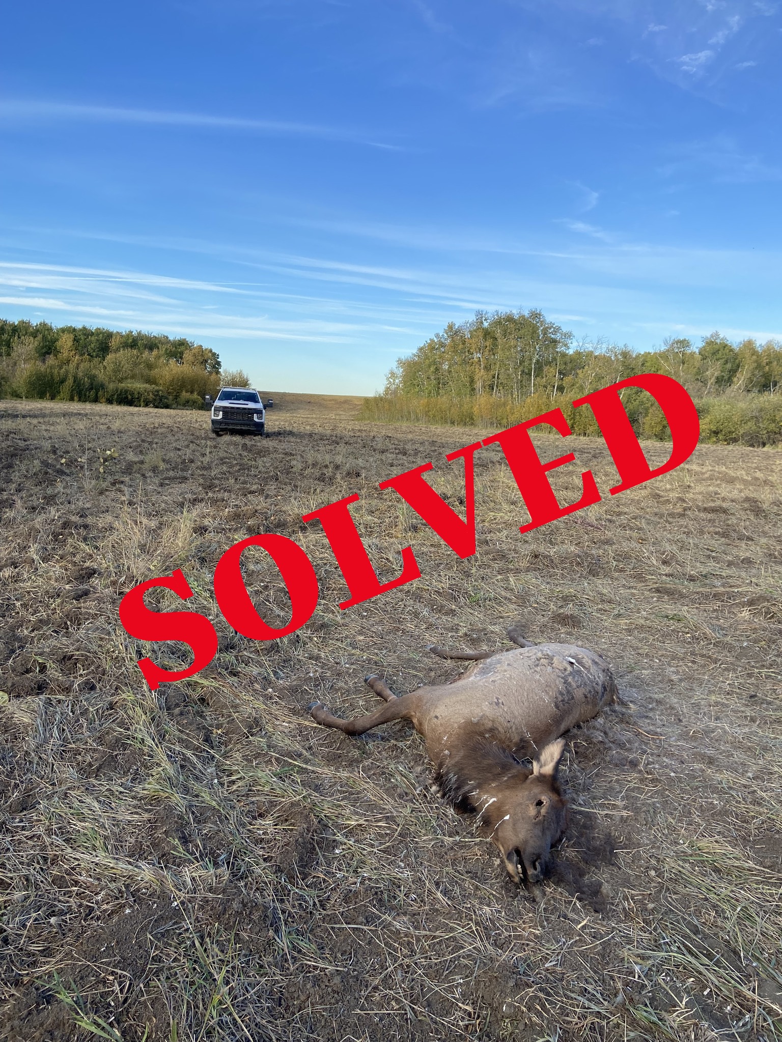 On September 27, 2025, Nipawin Conservation Officers were notified that a cow elk had been shot and left to waste near Aylsham, SK. Officers attended the location and collected evidence. Officers believe that the elk had been shot sometime between the evening of September 24 to September 26. There was a draw elk either-sex season on at the time.