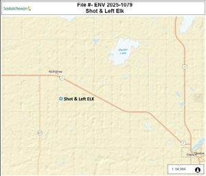 On November 3, 2025, Spiritwood Conservation Officers received a report of an elk that was shot and left to waste just south of Fairholme, about 200m off of the roadway. Evidence indicates that the subject drove up to the elk and deliberately left the animal. While at the scene, officers were able to collect some evidence and believe that the elk was shot earlier in the day. There was no active cow elk season at the time.