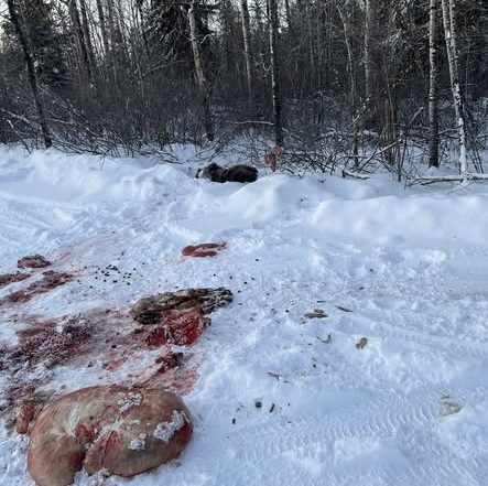 Cow moose unlawfully shot and left to waste on private land south of Paradise Hill, SK